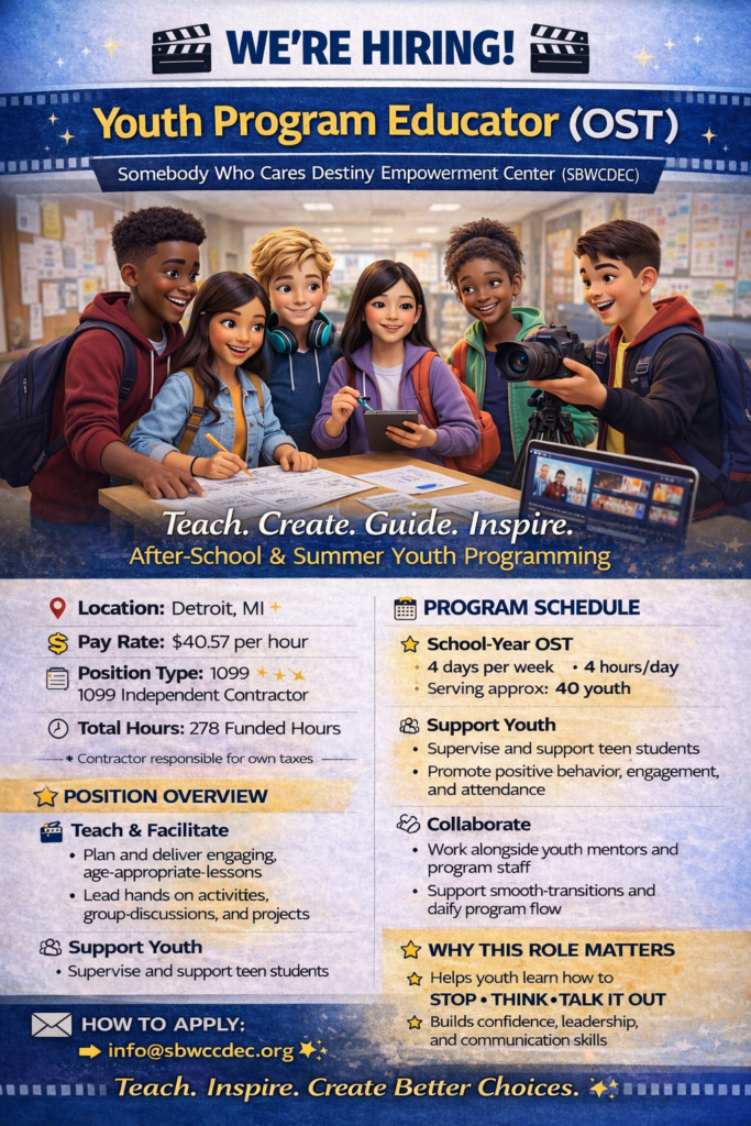 Somebody Who Cares Destiny Empowerment Center (SBWCDEC) is proud to announce that we have been awarded funding through the Michigan Department of Lifelong Education, Advancement, and Potential (MiLEAP) 2026 Out-of-School Time (OST) Grant.