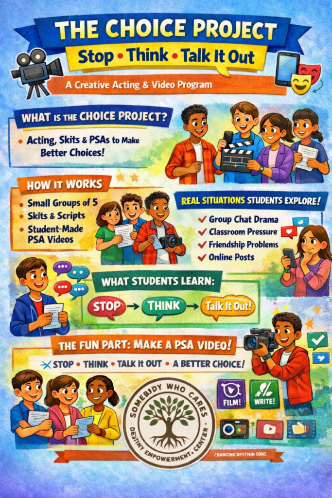 This funding will support the implementation of The Choice Project: Stop • Think • Talk It Out, a creative, trauma-informed program designed to empower youth through mentorship, life skills, and media arts education during both the school-year and summer OST sessions.